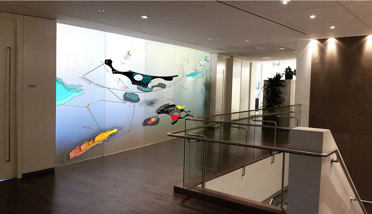 Conference Room Wall. Design can include branded imagery, molecules, etc. | digital print + mixed media on Plexiglas