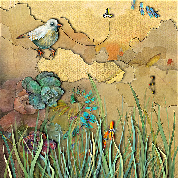 Rose Garden with Bird 7 layer translation | digital print on Plexiglas + mixed media