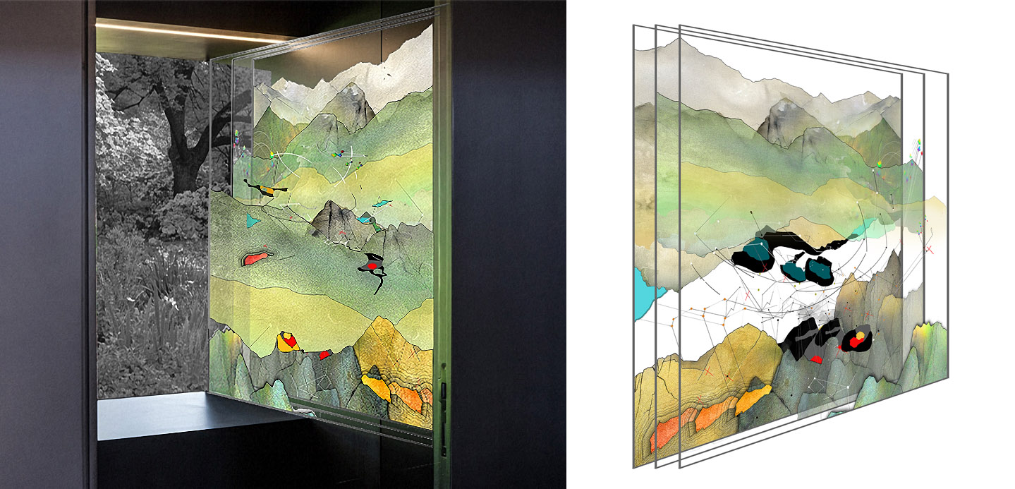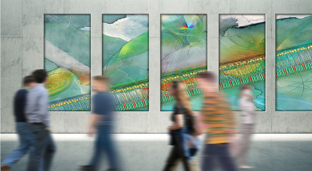 Concept Rendering: Mammalian Retina: Illuminated Panels | print + mixed media on back-lit plexi panels