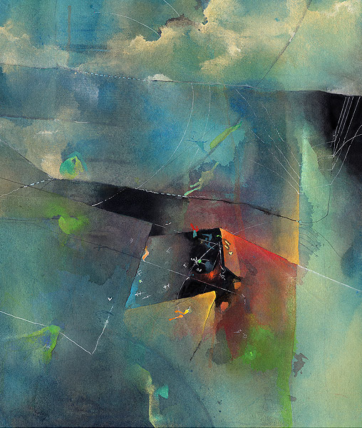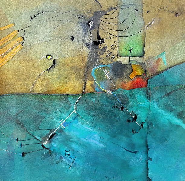Map of Blue Micro-physics | 18" x 18" digital print + mixed media