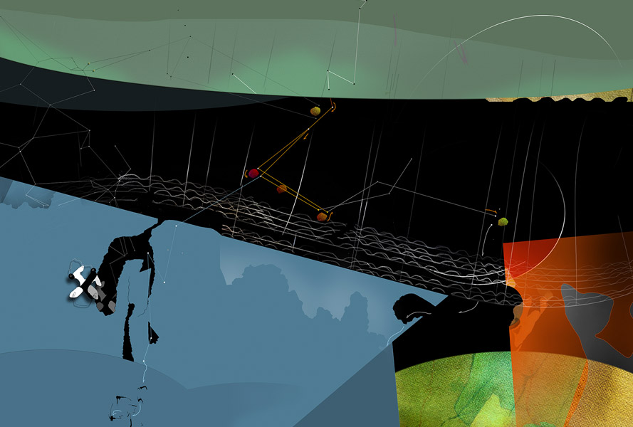 Map to Three Night Skies | 30" x 18" digital print + mixed media